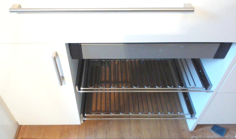 シンク下の引出し・スライド式ステンレス網棚・ビルトインゴミ箱等などアイデア満載